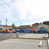 The mural design for the Florence Avenue Parking Lot draws inspiration from the energy one can feel from the community members, workers, shop owners and commuters along with the families and children that are constantly passing the parking lot location. Florence Avenue serves the Florence/Firestone community as a major corridor for many of its residents traveling to and from work. With the Metro Blue Line a block away and several bus lines stopping close to the location, the steady flow of commuters heightens the feeling of traveling and movement.